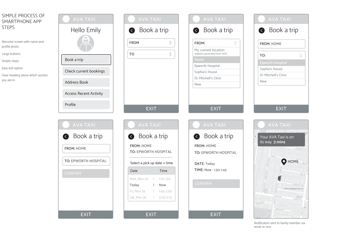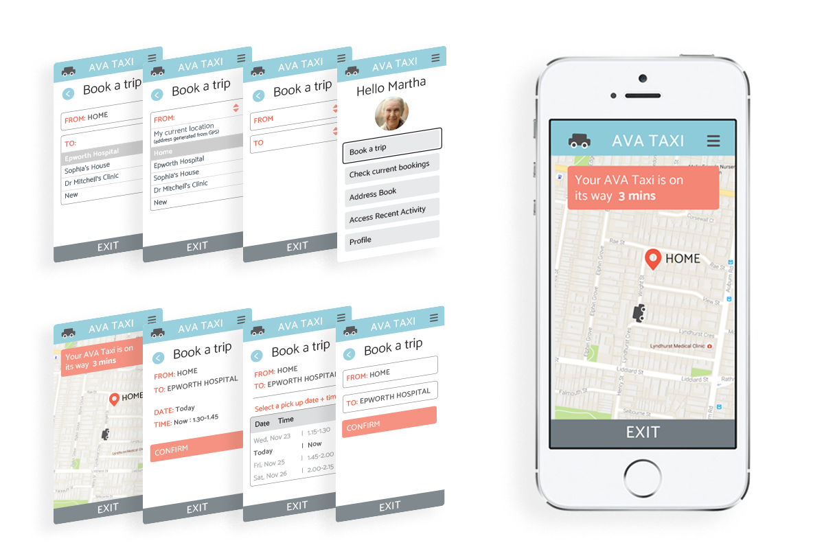 Draw a rough map of the AVA Taxi service, which shows how a user may use the service once it is up and running and that