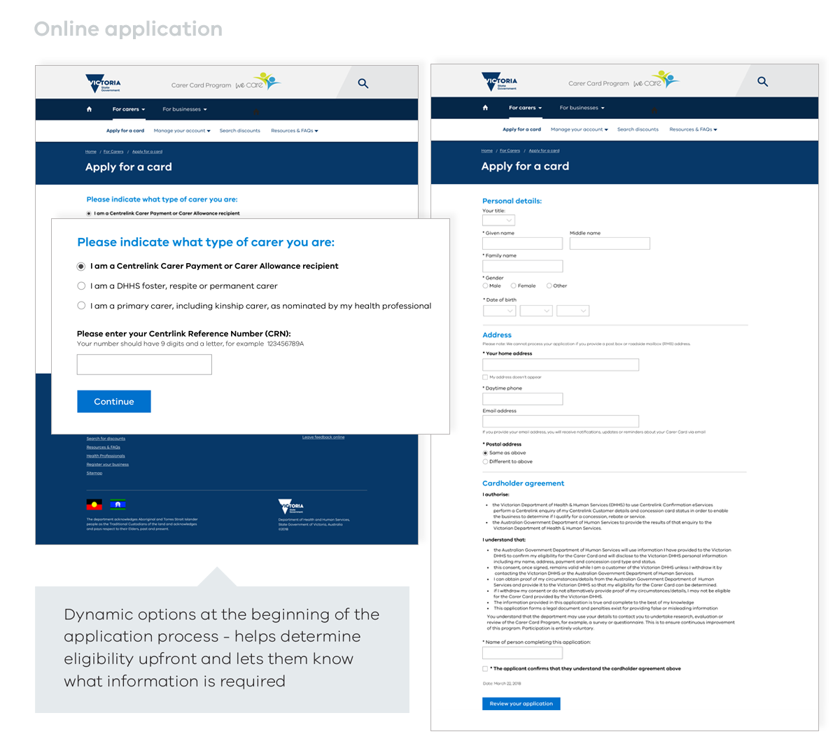 I simplified the form, the start of the application process now contains dynamic fields to identify the type of carer you are and the information needed.