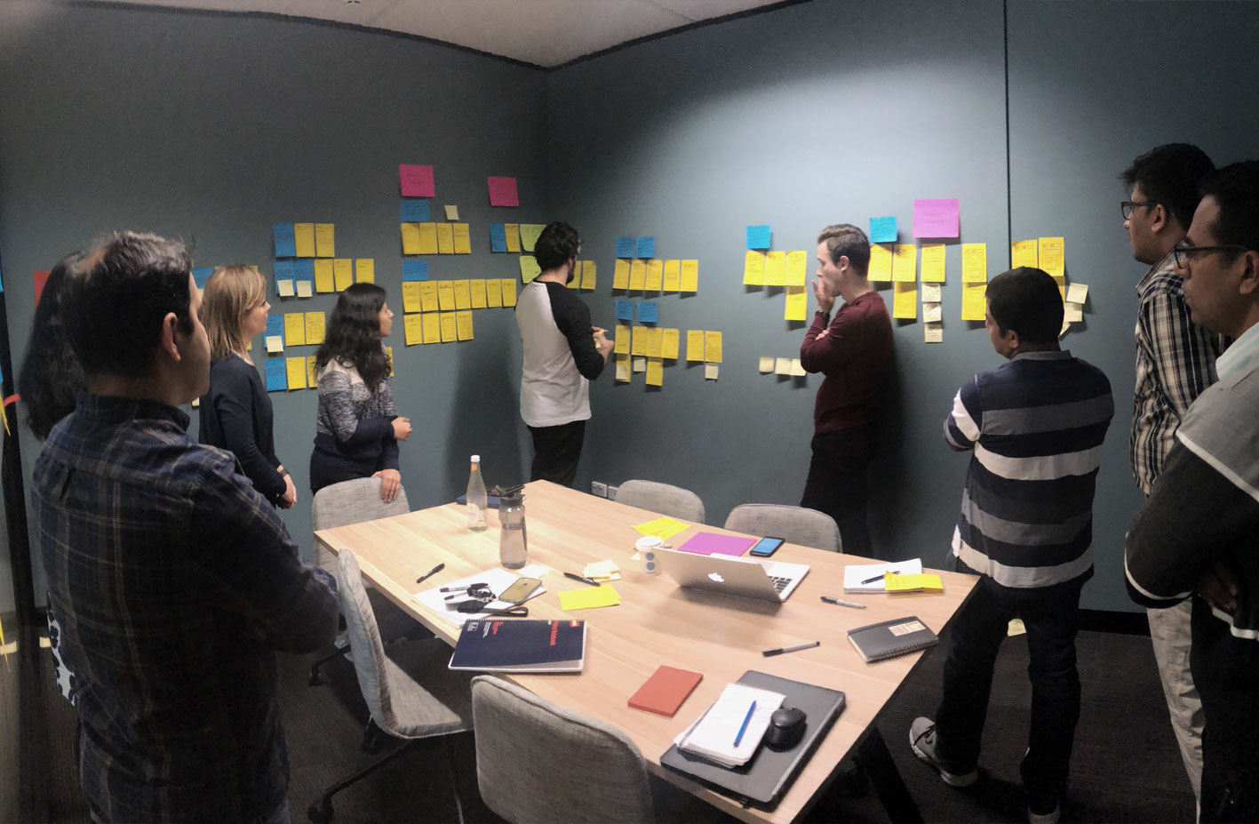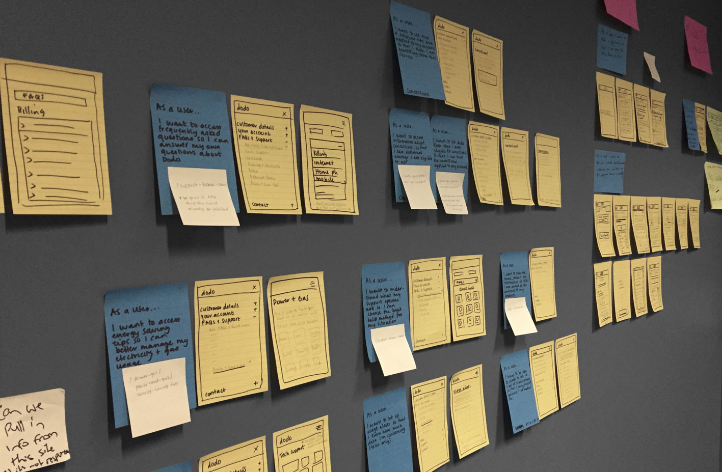 This involved low fidelity sketches of user flows put onto a wall giving people the opportunity to mark up any issues before moving into mid fidelity designs for testing.