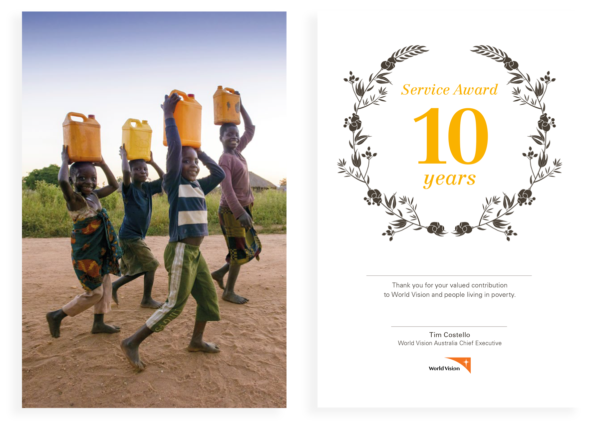 Designed Service Awards for staff. There was a series created: 5, 10, 15, 20, 25, 30 and 35 years. These awards were placed in a perspex frame and you could have either side showing at your desk.